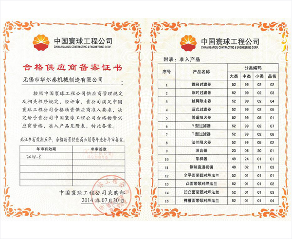 中石化供应商证书