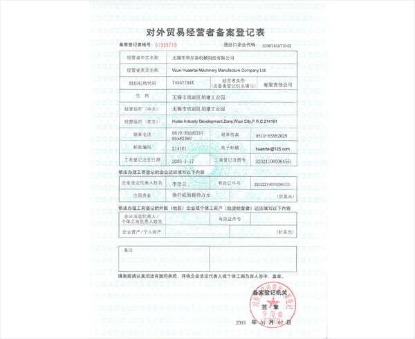 对外贸易备案登记2015