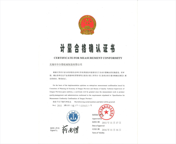 计量合格确认证书