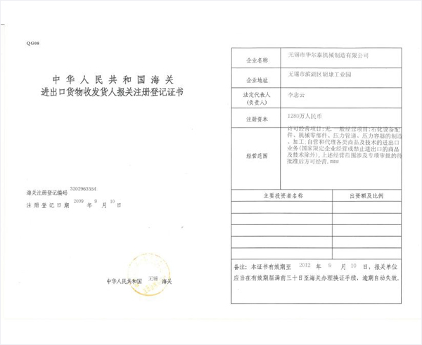 进出口注册登记证
