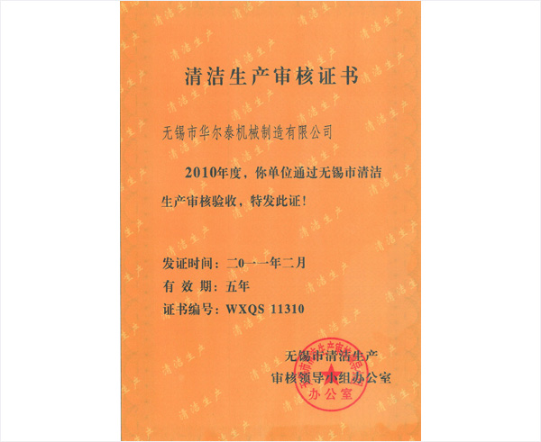 清洁生产审核证书
